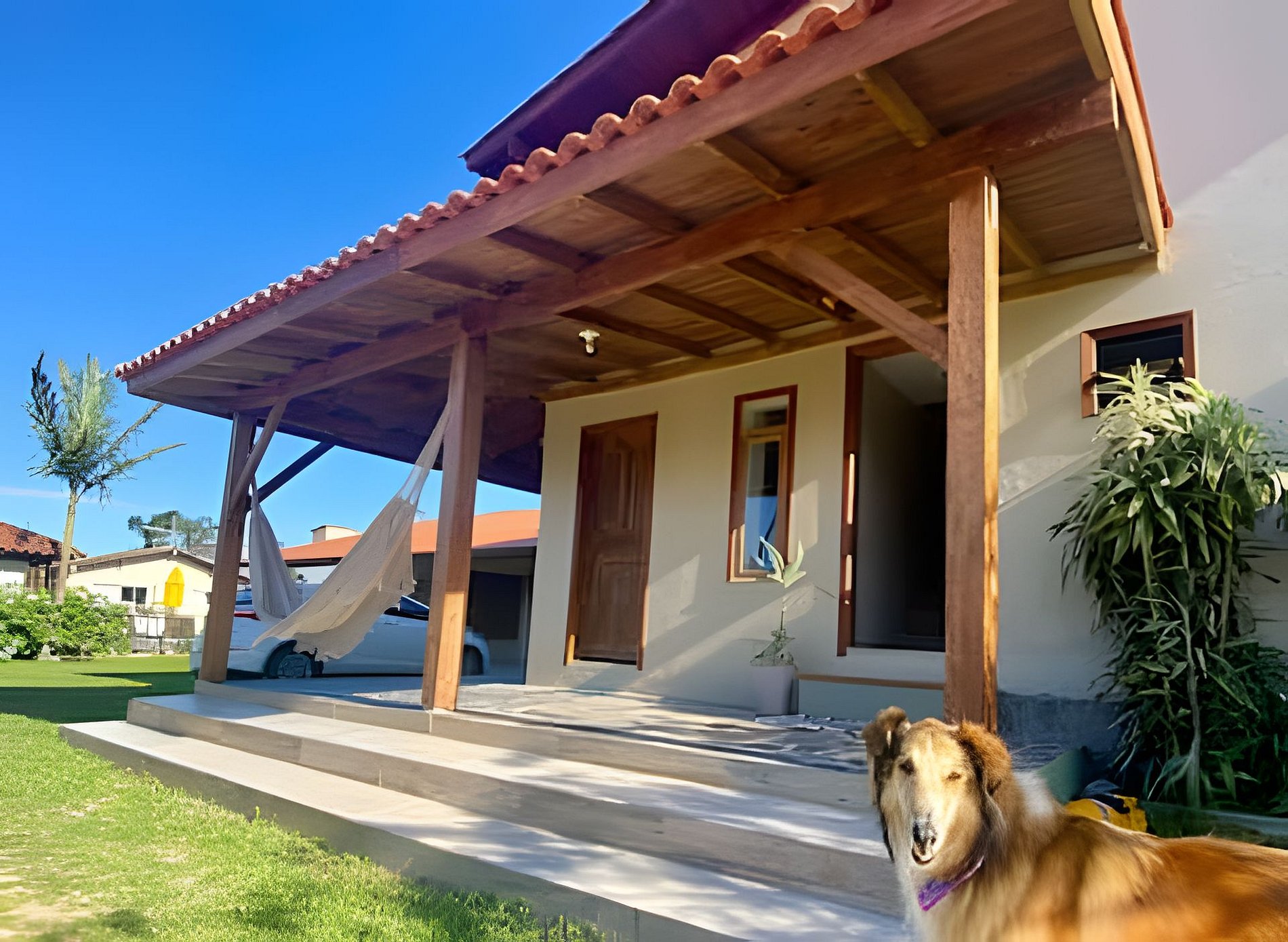 O terreno é extenso e compartilhado com nossas outras unidades de aluguel, proporcionando um ambiente tranquilo e espaçoso. Você pode desfrutar de: